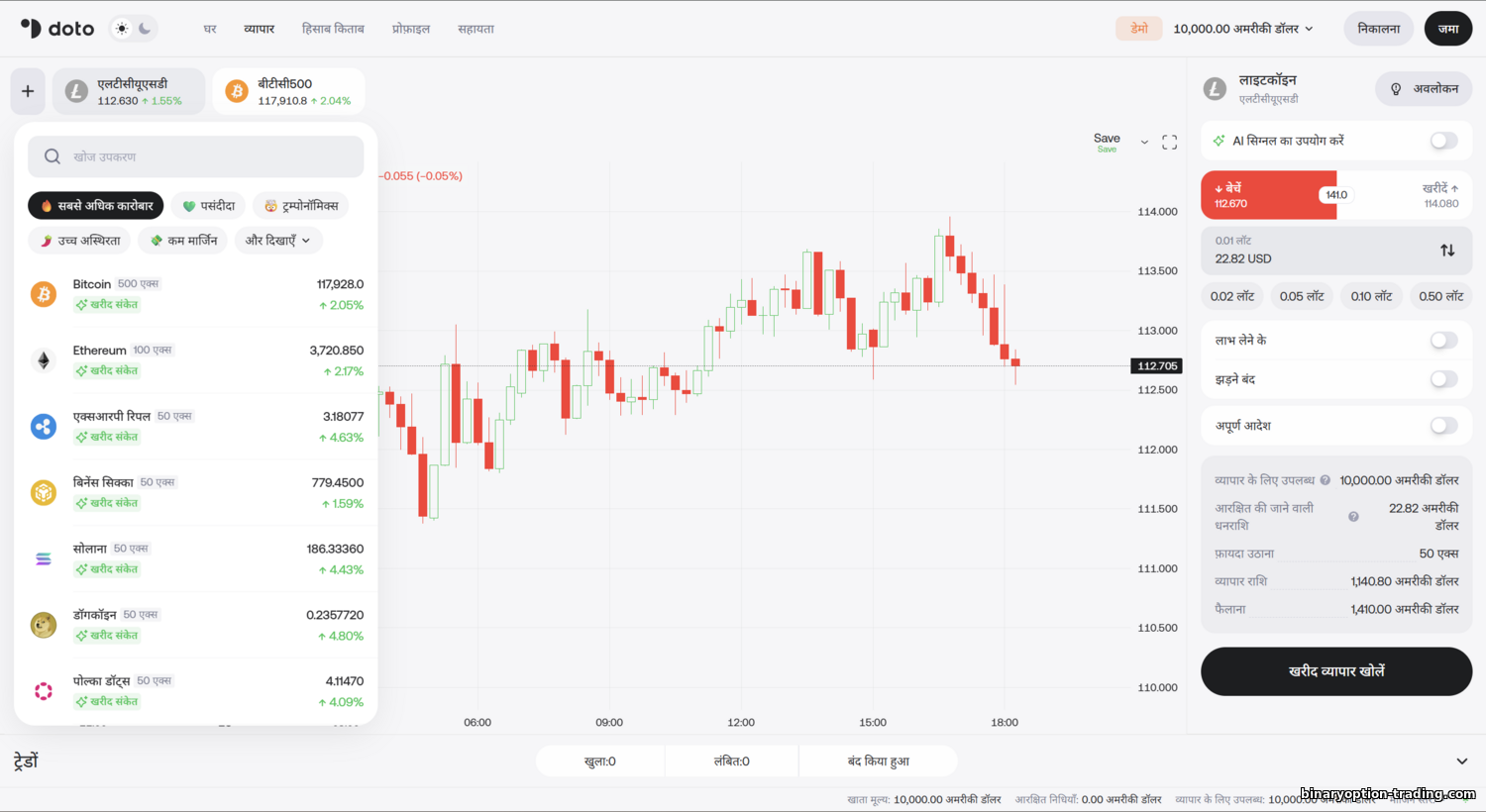 संक्षेप में, Doto की इंस्ट्रूमेंट सूची उन ट्रेडरों को उपयुक्त लगेगी जो Forex व CFD पर केंद्रित हैं। ब्रोकर खासकर उन लोगों के लिए आकर्षक है जो 24/7 क्रिप्टो ट्रेड या मुद्रा व इक्विटी रणनीति संयोजन करते हैं। यदि आपको ETF CFD या सैकड़ों स्टॉक की ज़रूरत है, तो अन्य प्रदाताओं (RoboForex, Exness) से तुलना करें। Doto ने स्टॉक्स जोड़ने की योजना बताई है, जिससे इसकी बहुमुखी प्रतिभा और बढ़ेगी।