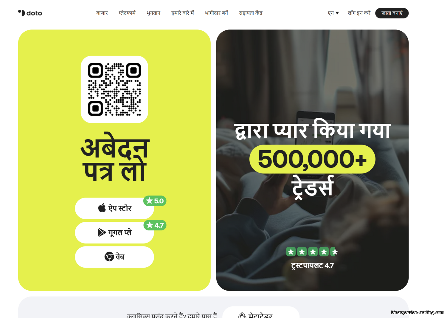 - स्मार्टफ़ोन/टैबलेट: Doto ऐप्स (Android, iPhone/iPad) व MetaTrader 4/5 ऐप्स। Doto वेब टर्मिनल भी मोबाइल-रेस्पॉन्सिव है, मगर छोटे स्क्रीन पर ऐप अधिक सुविधाजनक है।