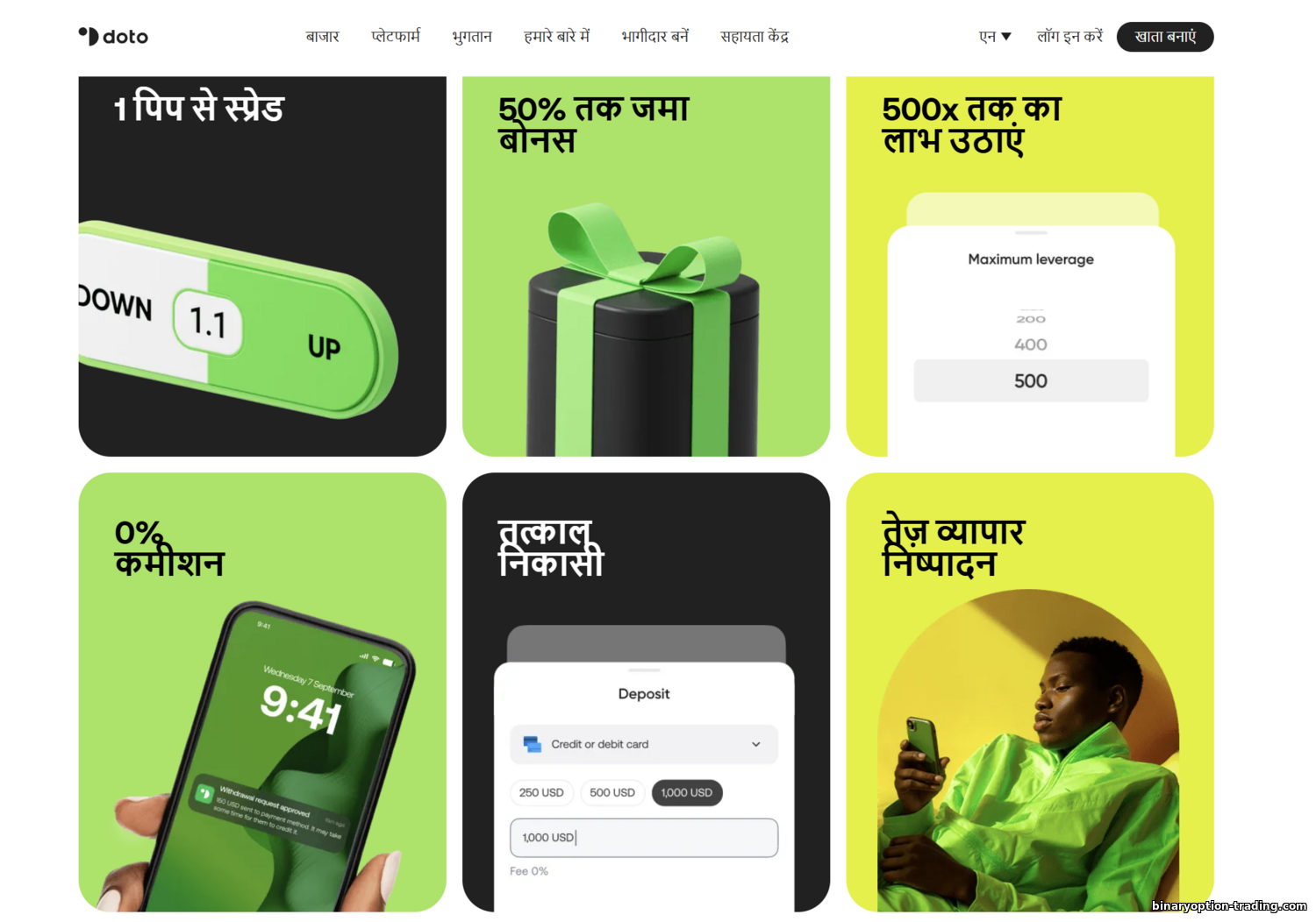 लिवरेज के मोर्चे पर Doto अधिकतम लचीलापन देता है, पर 1:500 पूरे इस्तेमाल से बचें—कुछ खराब ट्रेड जमा पूंजी मिटा सकते हैं।