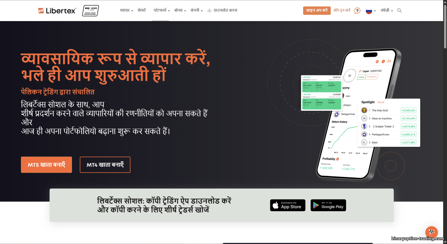 - Libertex — स्वामित्व वाली वेब प्लेटफ़ॉर्म और मोबाइल ऐप। 2015 में Forex Club द्वारा विकसित, इसे कई बार शीर्ष ट्रेडिंग प्लेटफ़ॉर्म के रूप में मान्यता मिली। Libertex की खासियत है पारंपरिक स्प्रेड का न होना। आप मार्केट प्राइस पर सौदा खोलते हैं; ब्रोकर तय कमीशन लेता है (आमतौर पर ट्रेड वैल्यू का 0.03% के आसपास)। मॉडल पारदर्शी है: शुल्क ट्रेड‑करेंसी में तुरंत दिखता है। लॉट व लीवरेज की जगह आप “मल्टीप्लायर” सेट करते हैं — प्रभावी रूप से पोज़िशन एम्प्लीफ़ायर (x500 तक)। नए उपयोगकर्ताओं के लिए यह सरल है: जोखिम उस राशि तक सीमित है जो आपने पोज़िशन में लगाई; उससे अधिक नहीं खो सकते। न्यूनतम स्टेक $10, चार्ट इंटरैक्टिव हैं, दर्जनों इंडिकेटर्स, न्यूज़ अलर्ट, वन‑क्लिक ट्रेडिंग, और साफ‑सुथरा स्मार्टफोन अनुभव। कई लोग कहते हैं कि Libertex “पहली बार इस्तेमाल करने वाले के लिए भी समझने योग्य” है। जैसा कि एक Google Play रिव्यू कहता है: “इंटरफ़ेस बढ़िया है, सब कुछ हाथ में और साफ। लंबे समय तक ट्रेड करने के बाद इसके फायदे बेहतर दिखते हैं।”