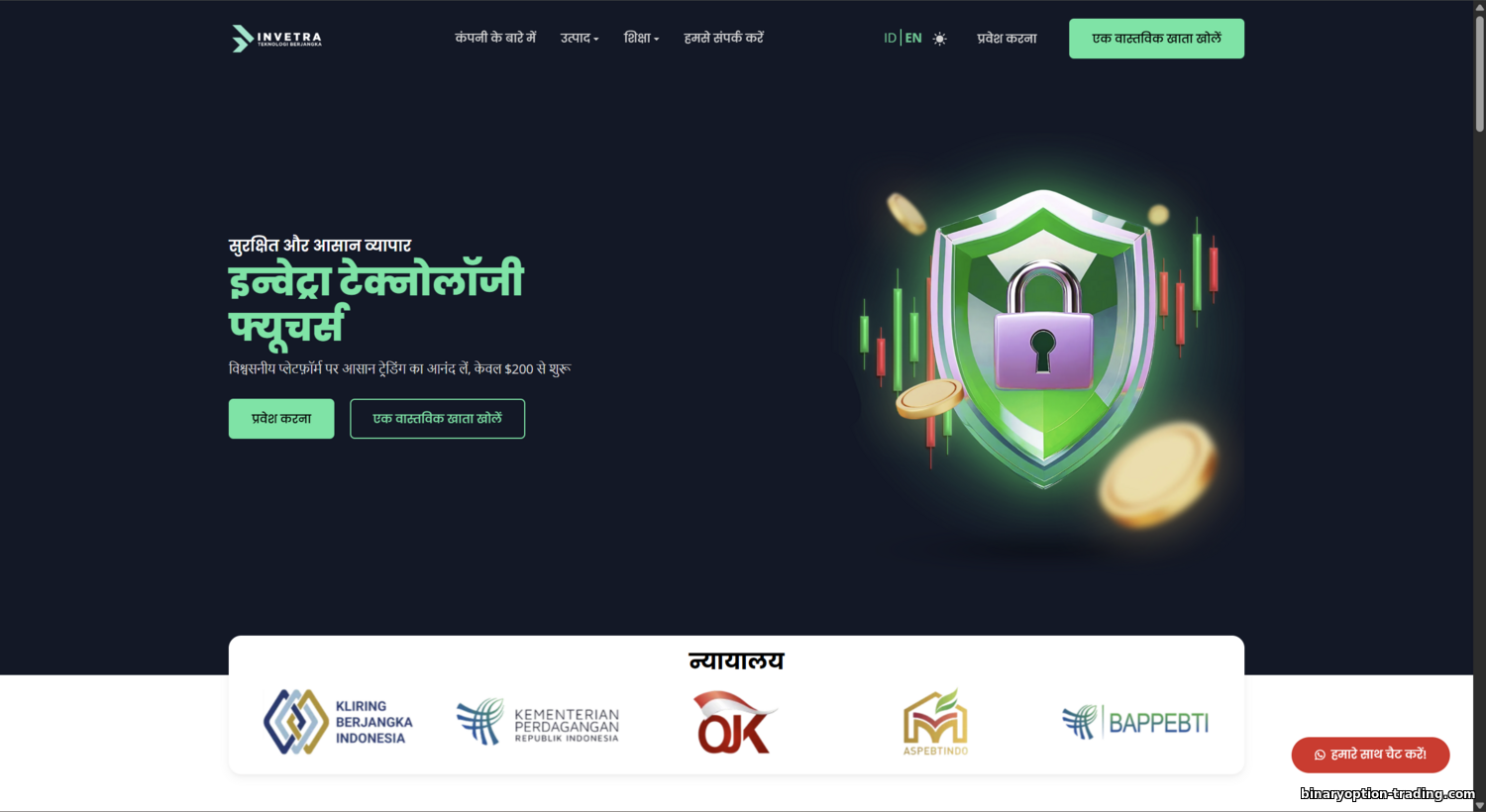 Invetra ऑनलाइन ट्रेडिंग का नया खिलाड़ी है, जो Forex और CFDs ऑफर करता है और खुद को एक प्रॉप‑ट्रेडिंग प्लेटफ़ॉर्म (ट्रेडर्स को फंडिंग) के रूप में पेश करता है। ब्रोकर ने 2024 के अंत में लॉन्च किया और इसे PT Invetra Teknologi Berjangka संचालित करता है। भौगोलिक रूप से Invetra इंडोनेशिया से जुड़ा है—पैरेंट कंपनी यहीं रजिस्टर्ड है और स्थानीय लाइसेंस रखती है। ब्रोकर आधुनिक सेटअप का प्रचार करता है: क्लाइंट्स MetaTrader 5 पर ट्रेड कर सकते हैं और प्रॉप प्रोग्राम के माध्यम से फंडिंग की कोशिश भी कर सकते हैं। शुरुआत से ही Invetra ने बाइनरी‑ऑप्शंस और CFD ट्रेडर्स को टारगेट किया है, नवाचार और प्रतिस्पर्धी टर्म्स का वादा करते हुए।