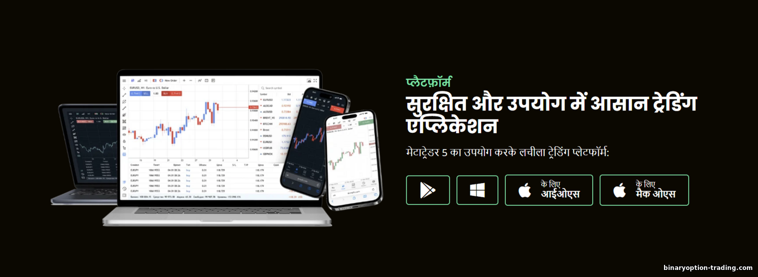 | प्लेटफ़ॉर्म | MetaTrader 5 + वेब/मोबाइल प्लेटफ़ॉर्म (Quadcode व्हाइट‑लेबल) | प्रोपाइटरी (Quadcode) | प्रोपाइटरी (वेब/मोबाइल) | प्रोपाइटरी (वेब/मोबाइल) |