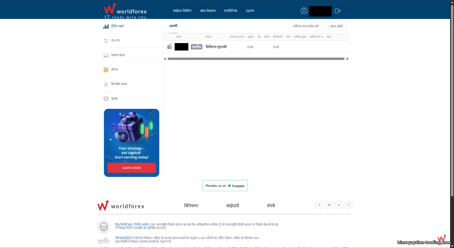 अकाउंट बनने के बाद World Forex Client Area आपका कंट्रोल सेंटर है। इंटरफेस सरल और उपयोगी है। मुख्य सेक्शन: