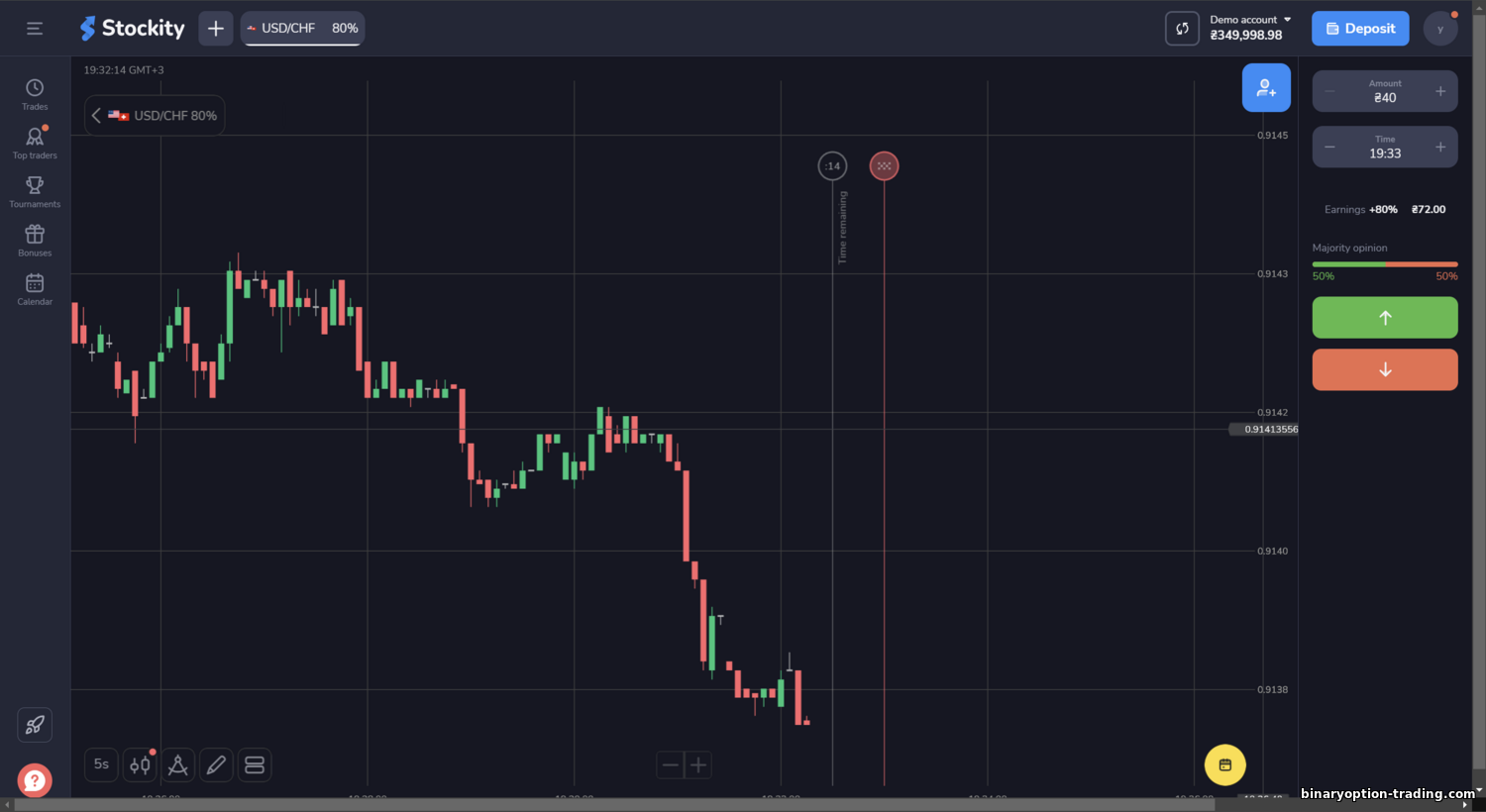 Stockity एक नया बाइनरी ट्रेडिंग प्लेटफ़ॉर्म है, जो सरल इंटरफ़ेस और गेमिफाइड ट्रेडिंग अनुभव पर जोर देता है। ब्रोकर शुरुआती लोगों को कम डिपॉजिट की जरूरत, अच्छे बोनस और नियमित प्राइज़ टूर्नामेंट्स से आकर्षित करता है। अभ्यास के लिए $10 000 का डेमो अकाउंट उपलब्ध है, और आप वेबसाइट या मोबाइल ऐप के जरिए ट्रेड कर सकते हैं।