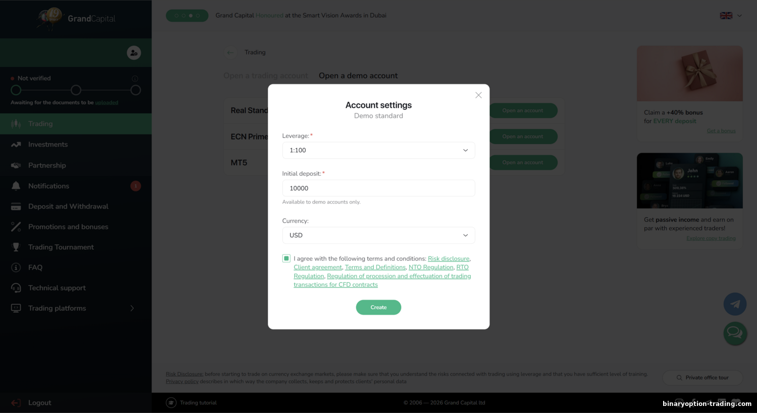 - Grand Capital – Forex मार्केट का अनुभवी (2006 से सक्रिय) ब्रोकर, जिसकी जड़ें Eastern Europe में हैं। कई अकाउंट टाइप्स देता है—सेंट अकाउंट्स और ECN अकाउंट सहित—साथ ही MetaTrader 4/5। Forex/CFDs के साथ अन्य सेवाएँ भी जोड़ता है: इन्वेस्टमेंट पोर्टफोलियो, कॉपी ट्रेडिंग (LAMM) और ट्रेडर कॉन्टेस्ट। रेगुलेशन: 2024 में Mwali (Comoros) लाइसेंस प्राप्त किया और Financial Commission का सदस्य है (€20,000 तक सुरक्षा)। Mwali को सख्त रेगुलेटर नहीं माना जाता (असल में ऑफशोर रजिस्ट्रेशन), लेकिन Financial Commission सदस्यता कुछ भरोसा बढ़ाती है। Grand Capital उन लोगों के लिए उपयुक्त है जो लंबे ऑपरेटिंग इतिहास और लचीलापन चाहते हैं। शुरू करने से पहले जाँचें: क्या सेवा आपके देश में उपलब्ध है (ब्रोकर के अनुसार कुछ रीजन—US, Russia, EU आदि—में काम नहीं करता, शर्तों के तहत)।